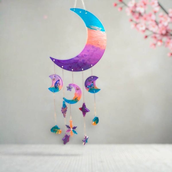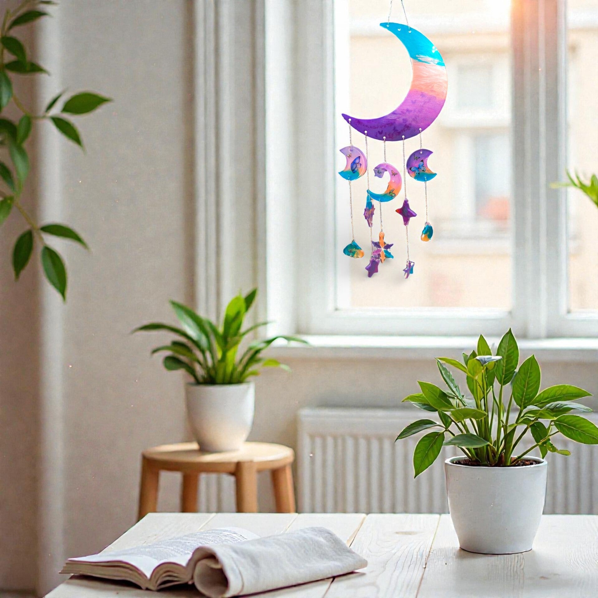 Chaque image révèle une facette de la suspension lunaire féerique : la douceur des couleurs, le mouvement des éléments suspendus et cette présence lumineuse qui attire naturellement le regard.