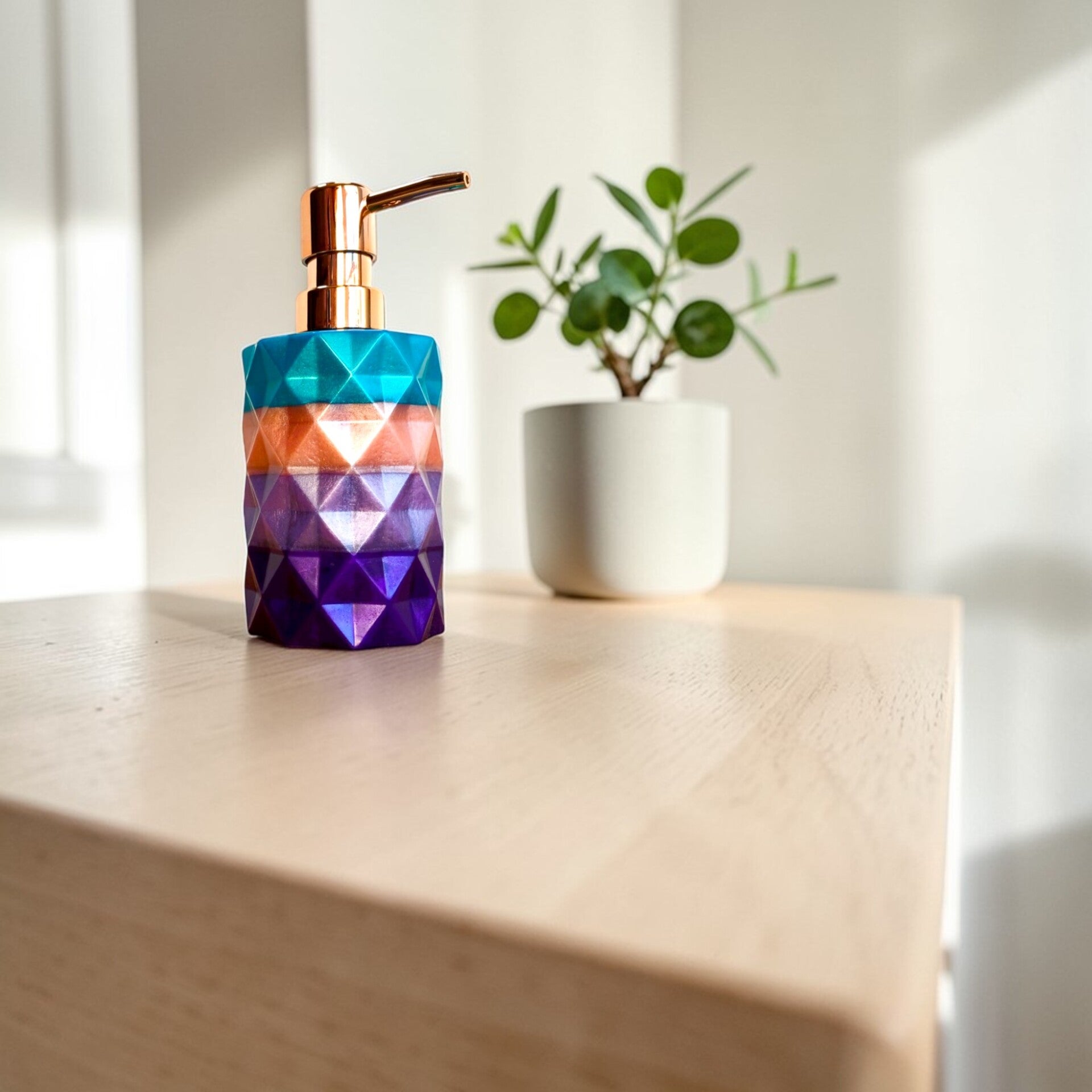 Chaque image révèle une facette du distributeur de savon féerique : les reflets subtils de la résine, les nuances délicates et les variations naturelles qui rendent chaque pièce unique.