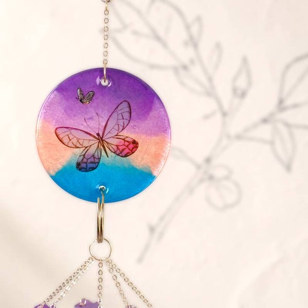 Chaque image révèle une facette du carillon nuit étoile papillon féerique : les nuances de couleur, les reflets délicats des éléments en résine et cette présence lumineuse qui attire naturellement le regard.
