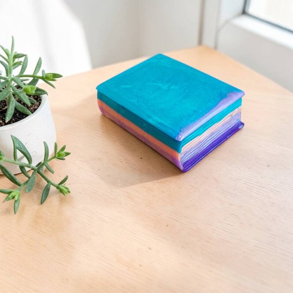 Chaque image révèle une facette de la boîte livre féerique : les variations de couleur, les reflets de la matière et cette présence douce qui s’intègre naturellement dans un intérieur.