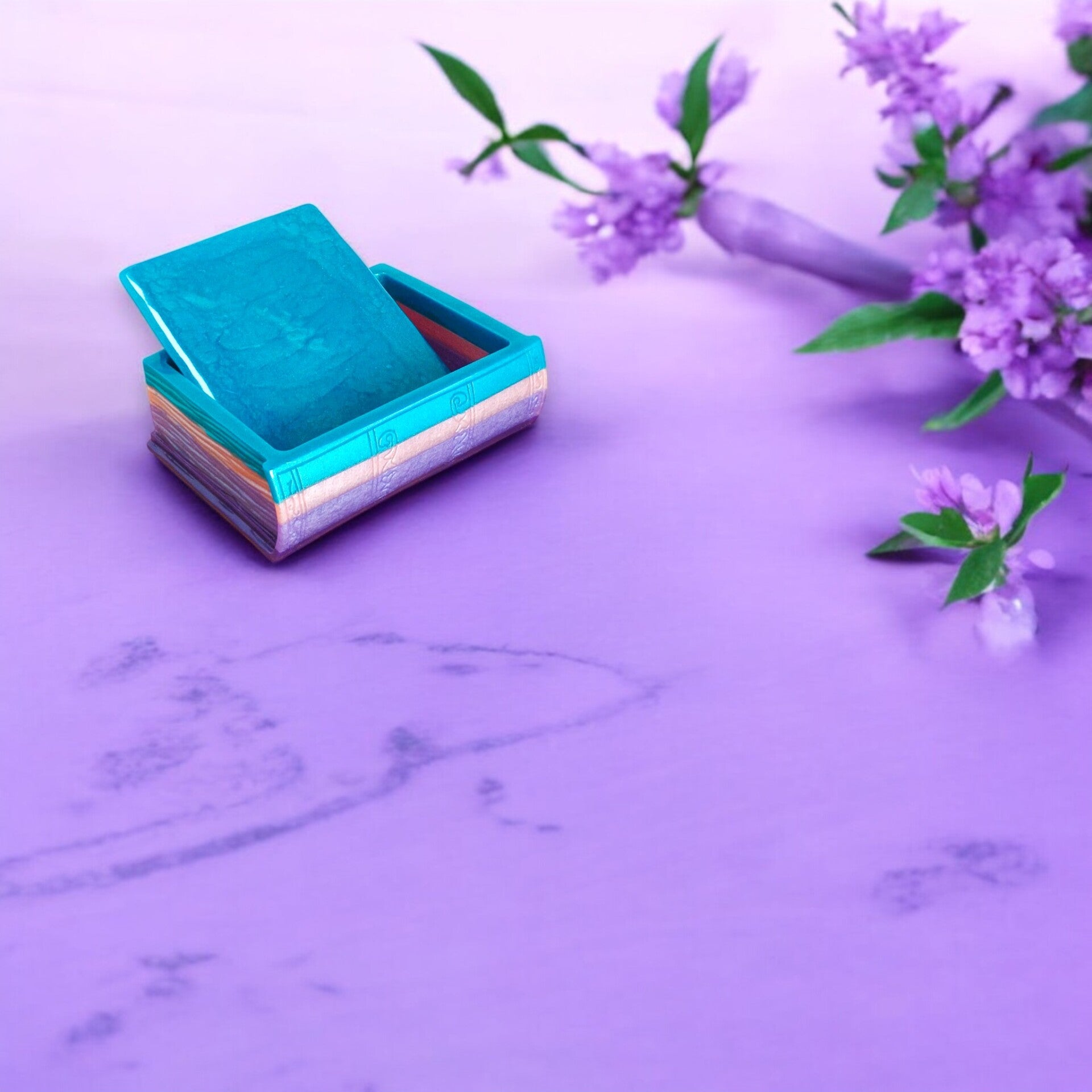 🦋 Façonnée à la main en résine époxy, cette boîte en forme de livre allie charme et délicatesse dans les moindres détails.