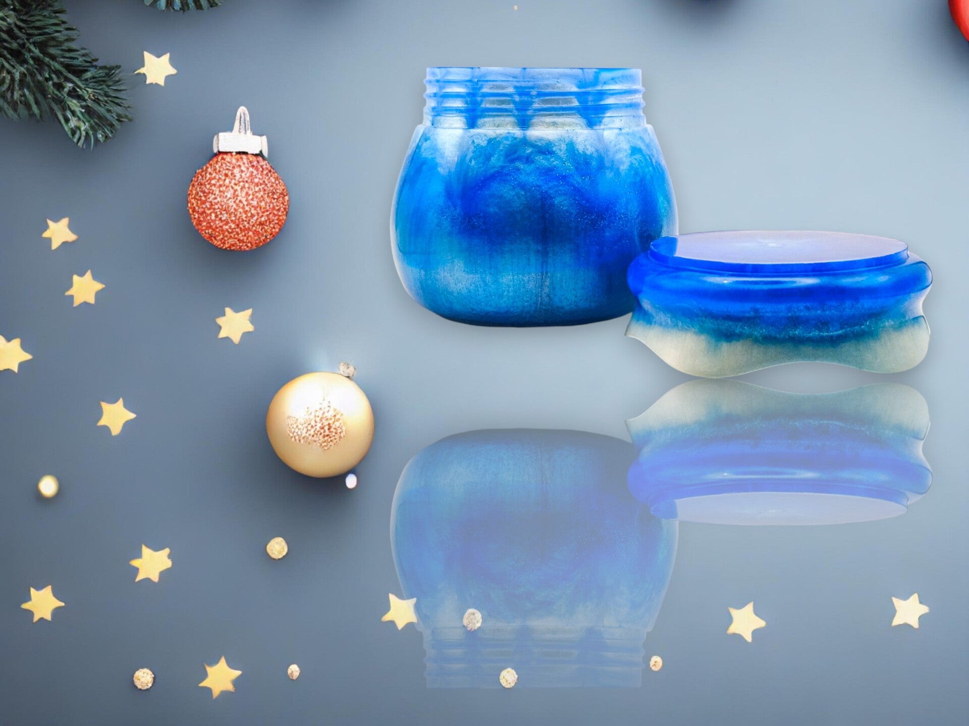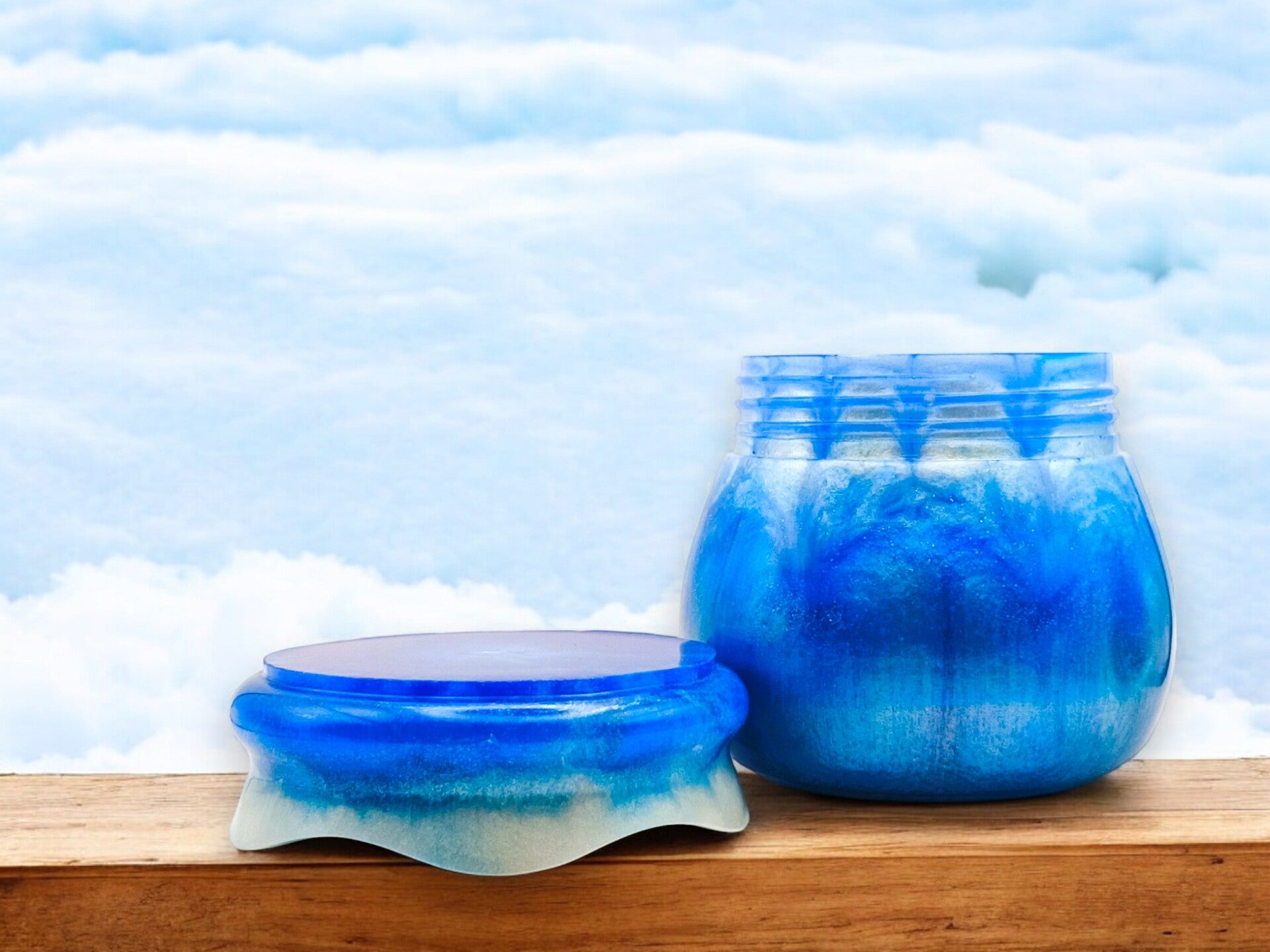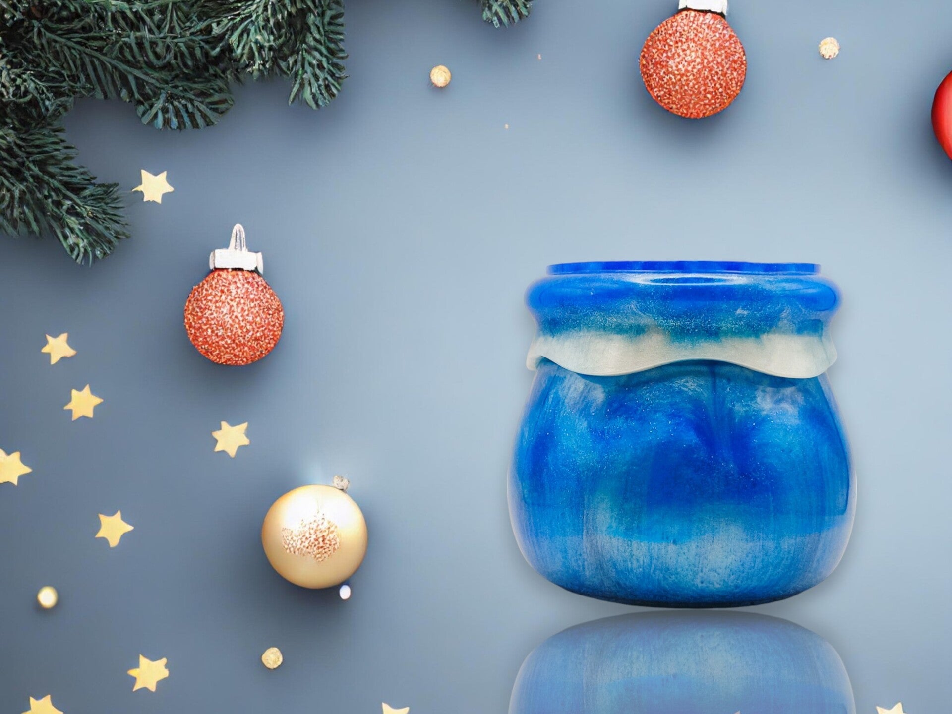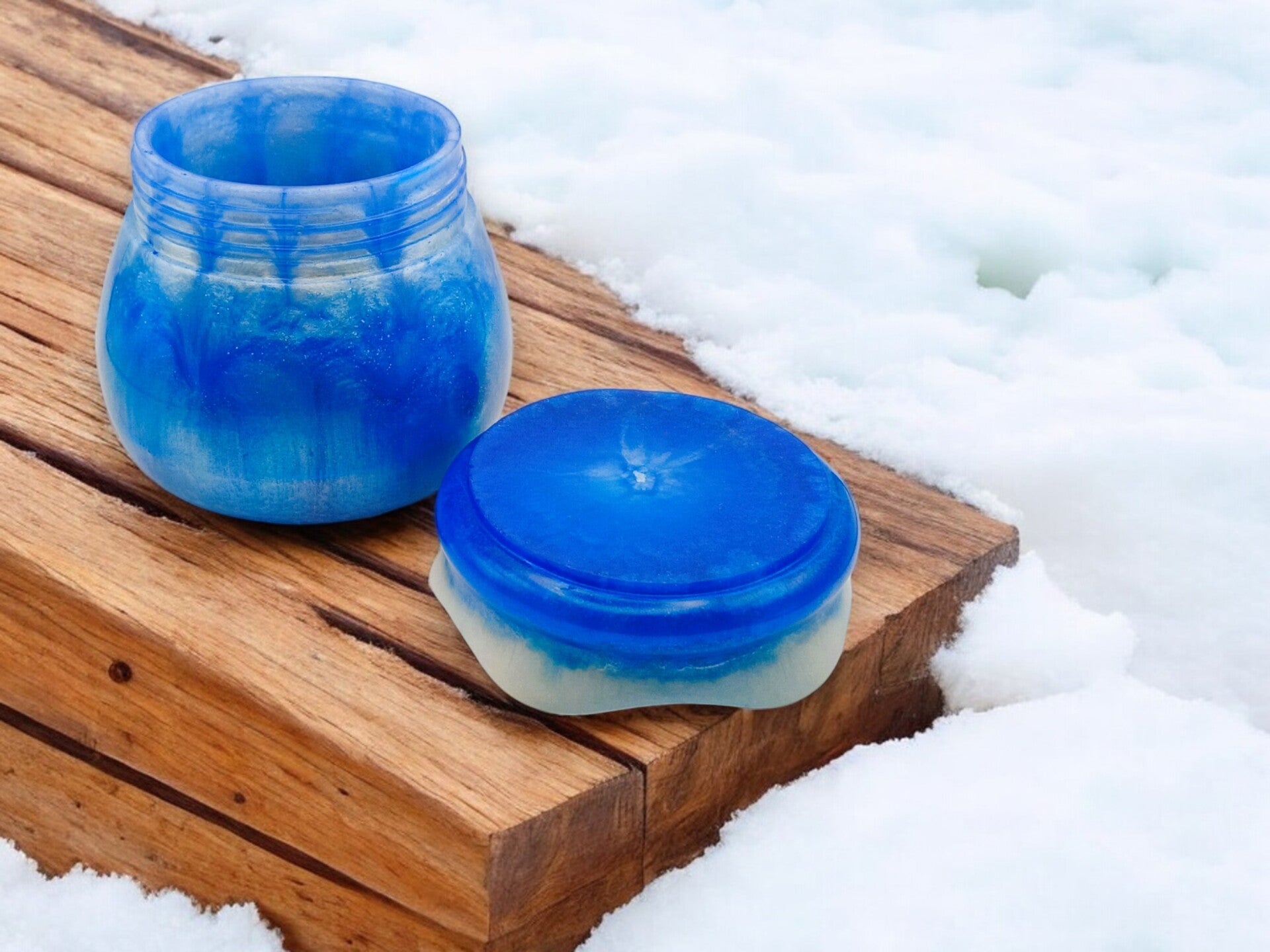 Plongez dans l’univers féérique de la Collection Flocon, où le blanc givré se mêle aux nuances de bleu profond et aux éclats scintillants pour créer une œuvre poétique et apaisante.
