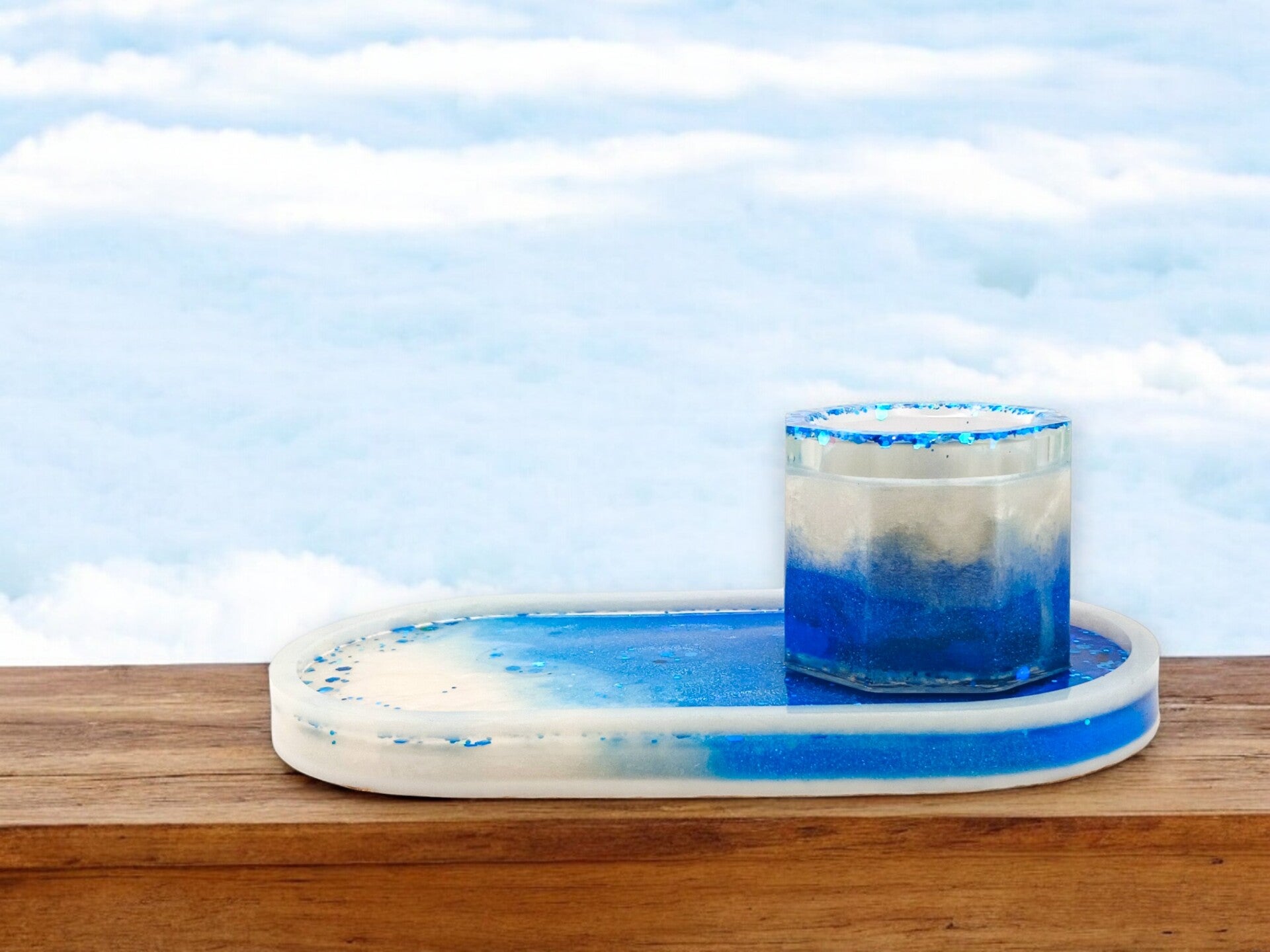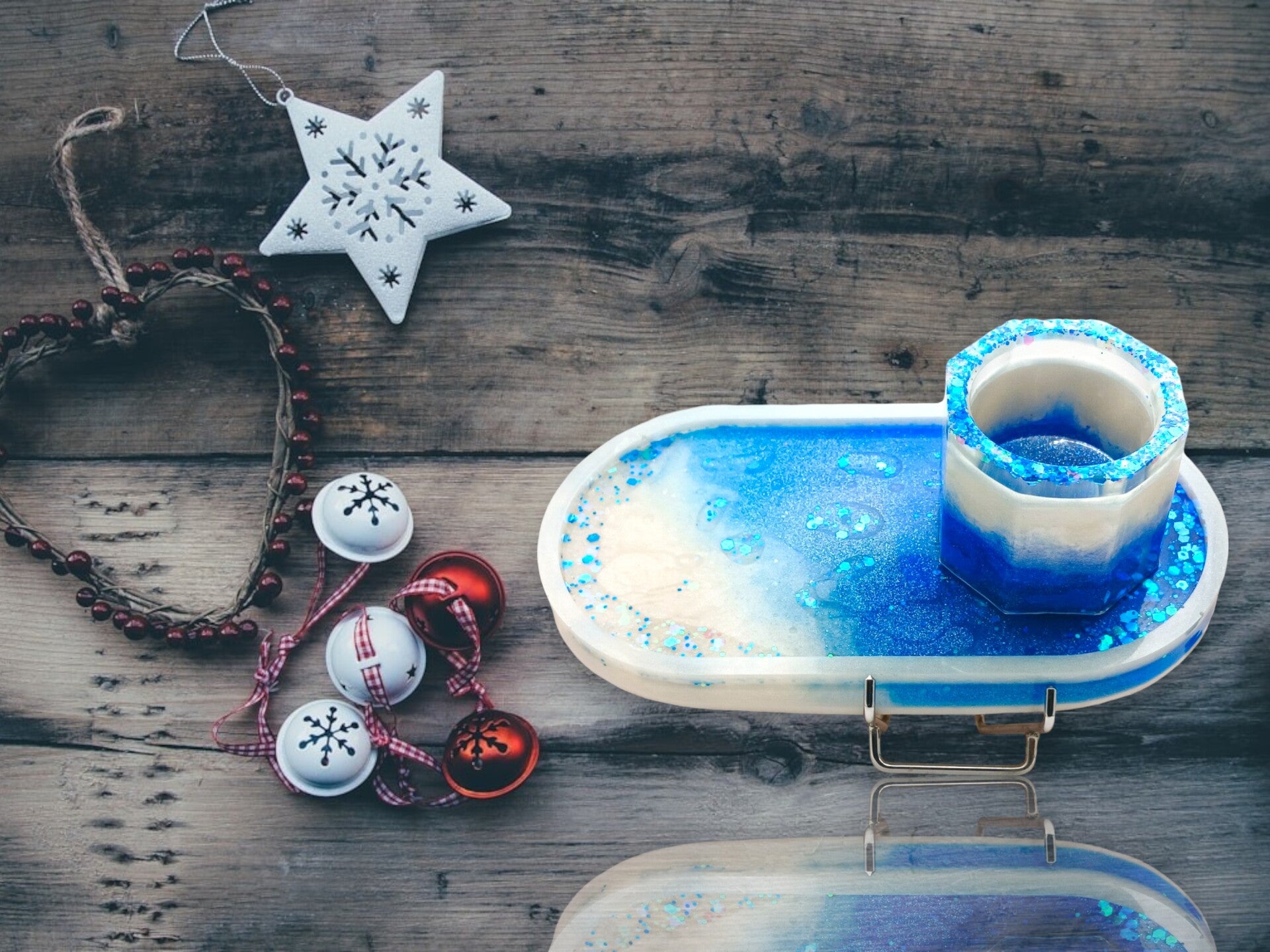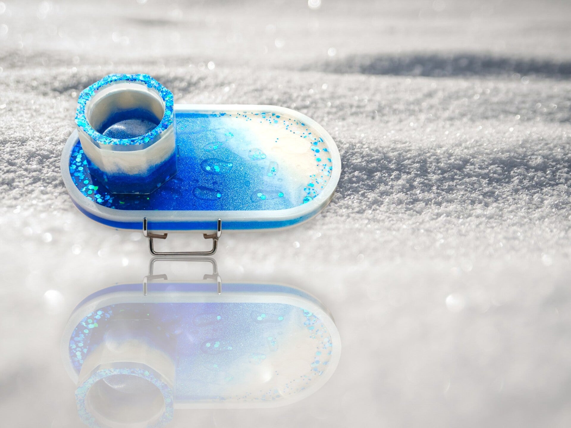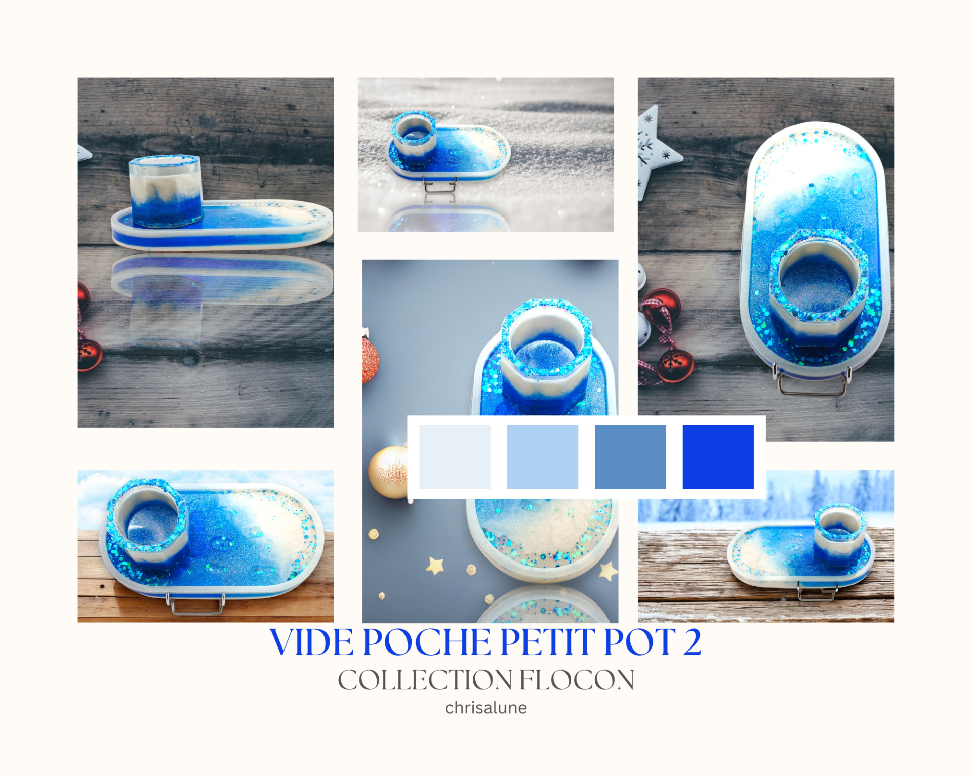 Dans la Collection Flocon, ce vide-poche et son pot en résine époxy allient blanc givré et bleu nuit intense, inspirés par la beauté cristalline des paysages enneigés. Façonnés à la main avec soin, ils apportent une touche raffinée et poétique à votre intérieur, où paillettes scintillantes et design élégant capturent toute la magie de l’hiver.