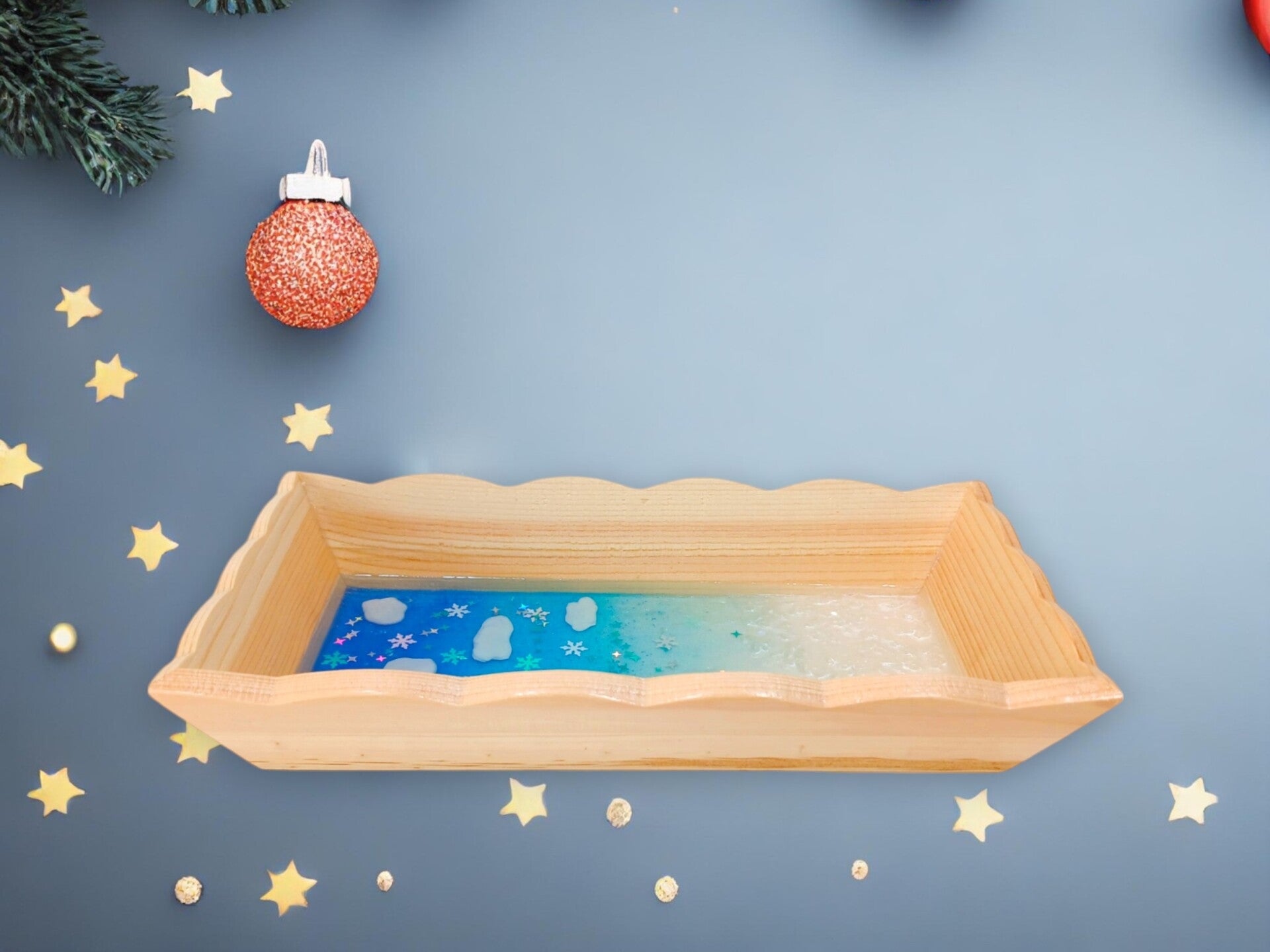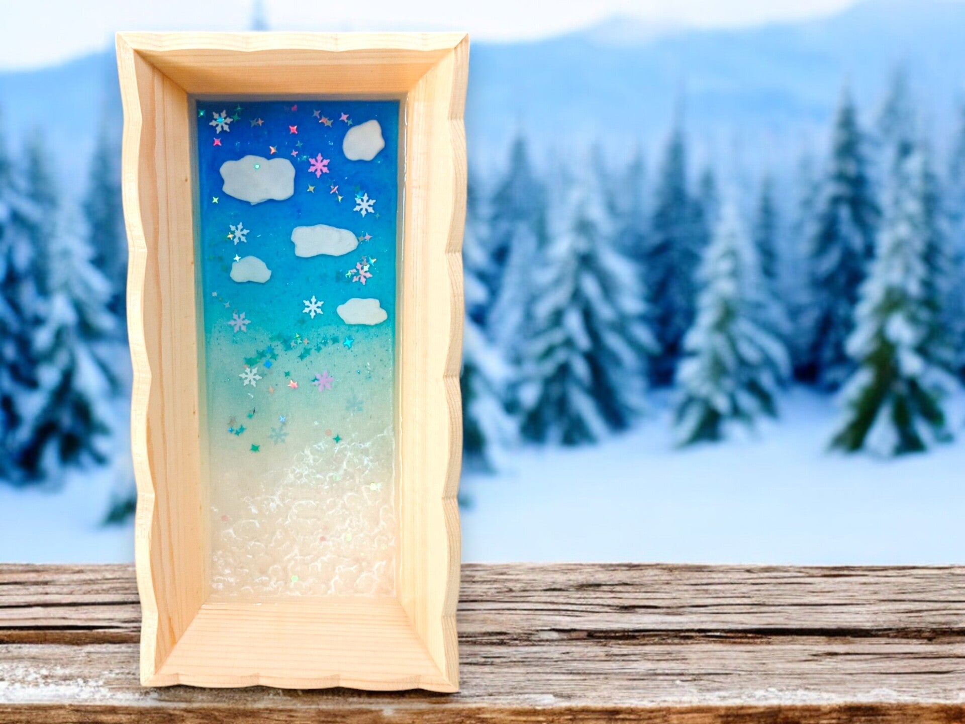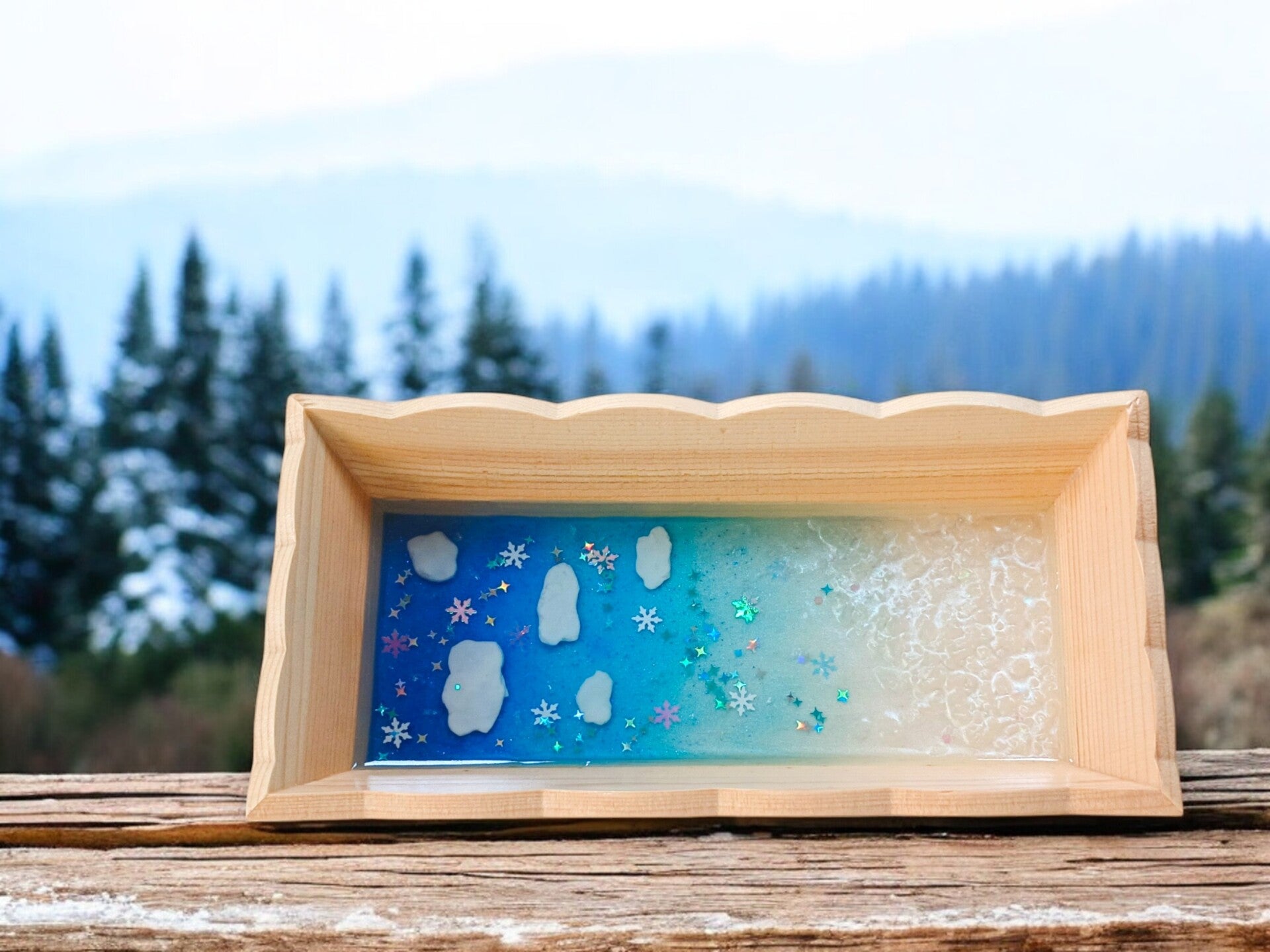 Vide poche écrin d'hiver en bois et résine époxy