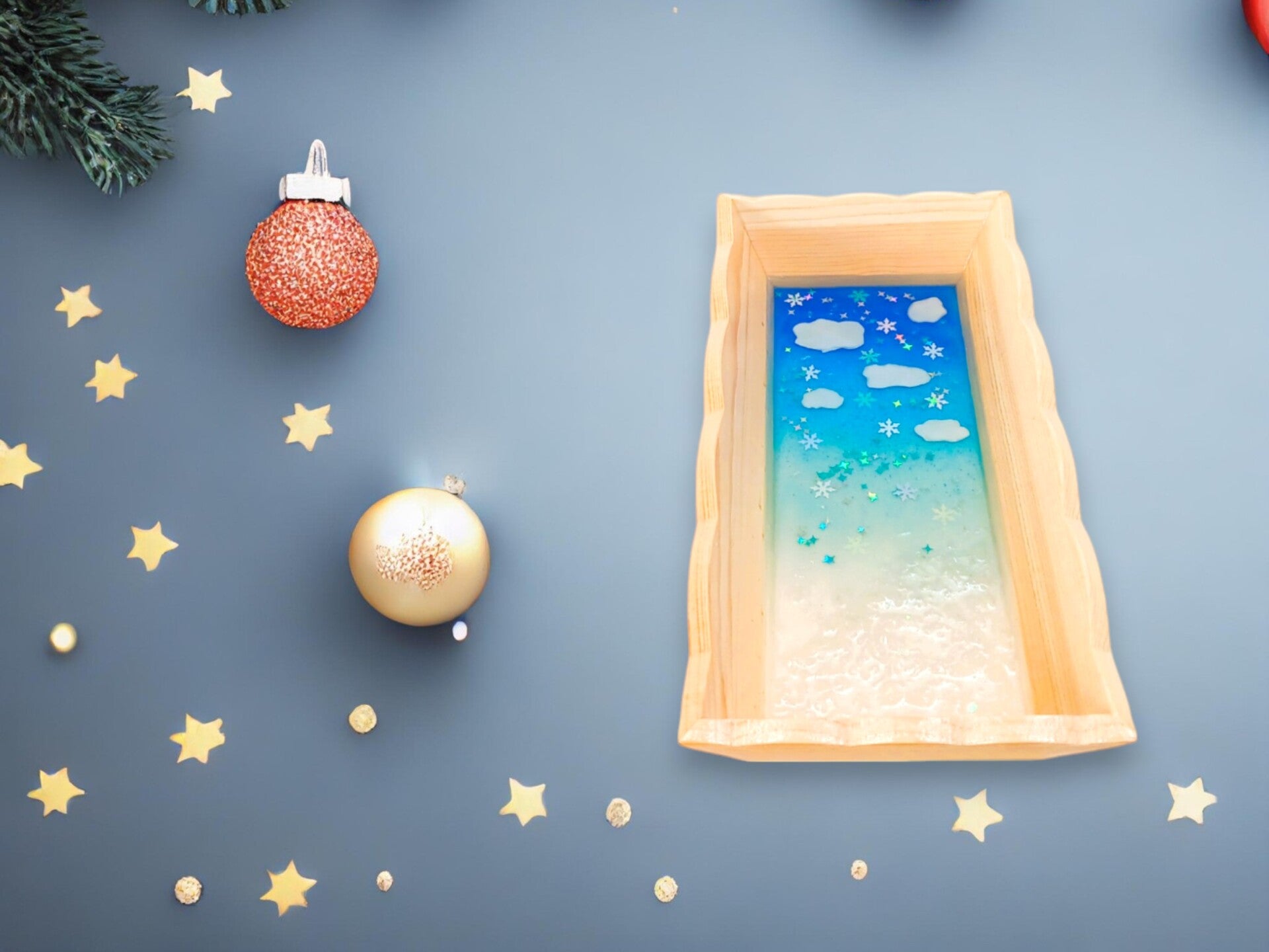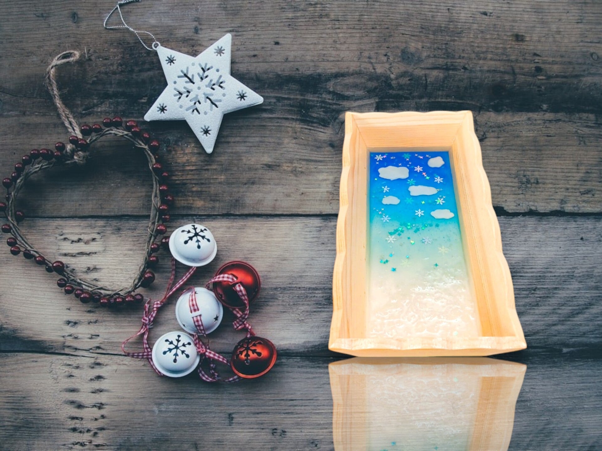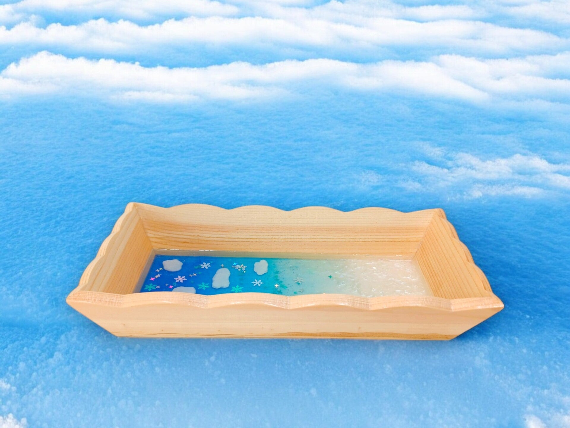 Vide poche écrin d'hiver en bois et résine époxy