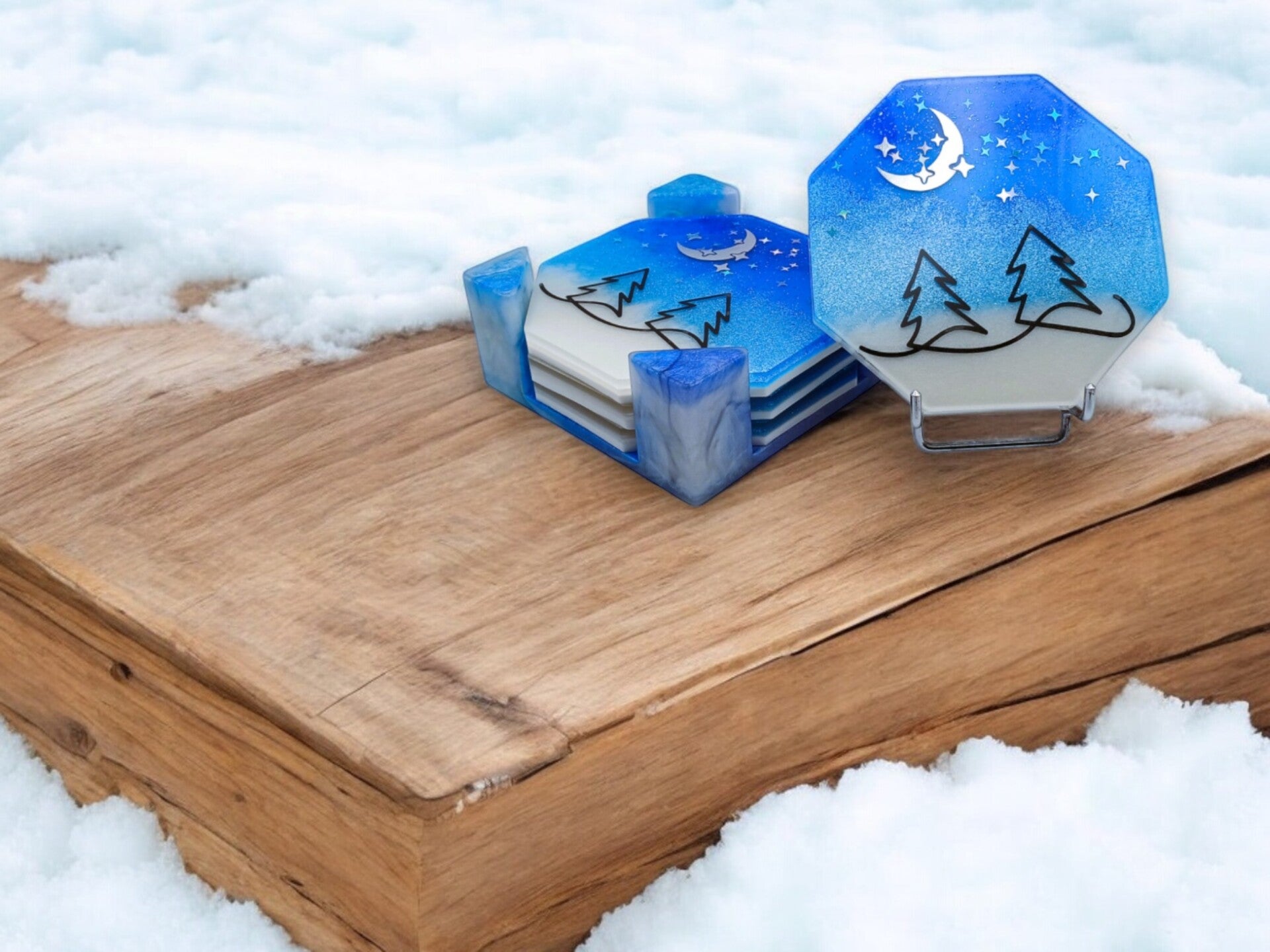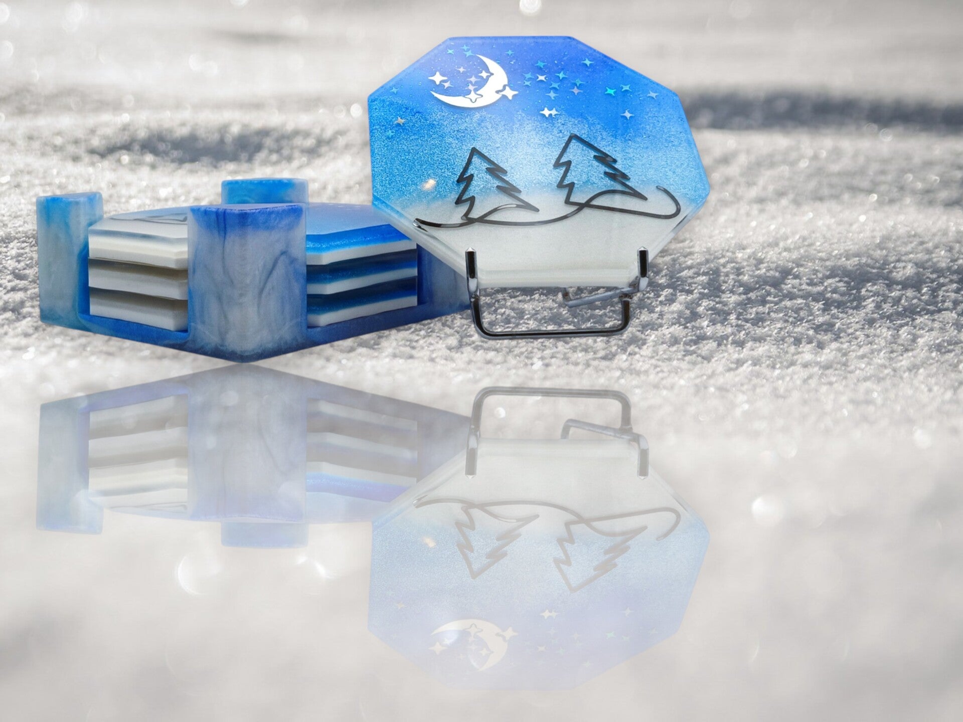 Ensemble De Sous-verre Murmures d'Hiver en résine époxy