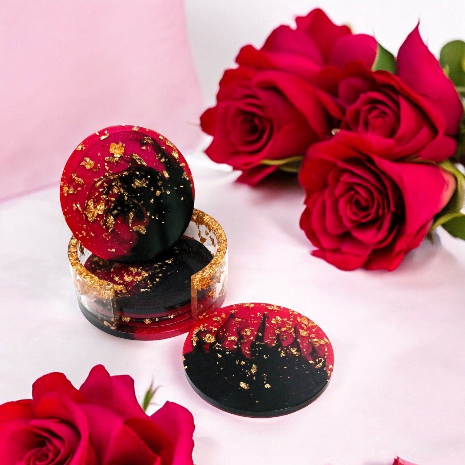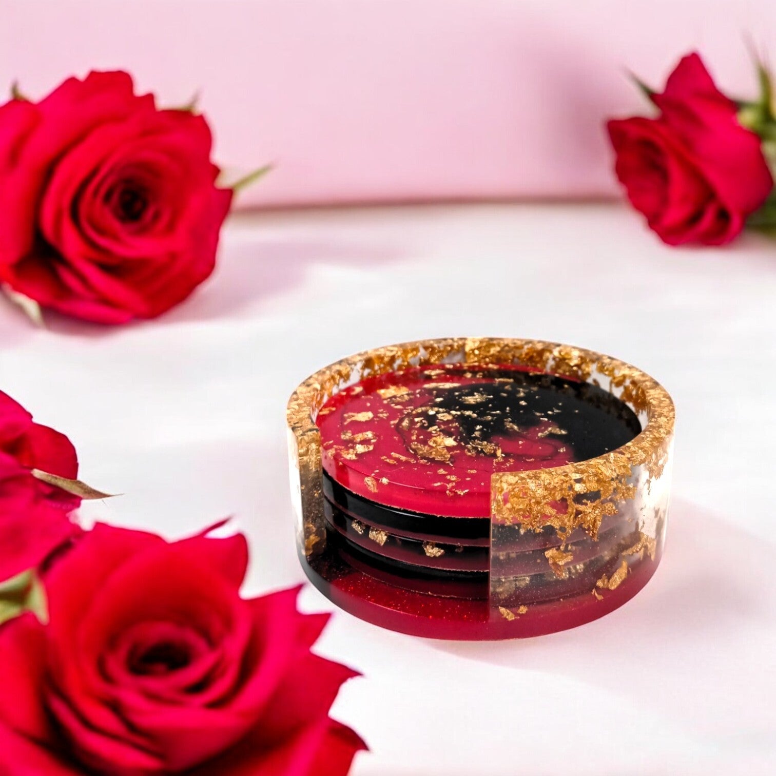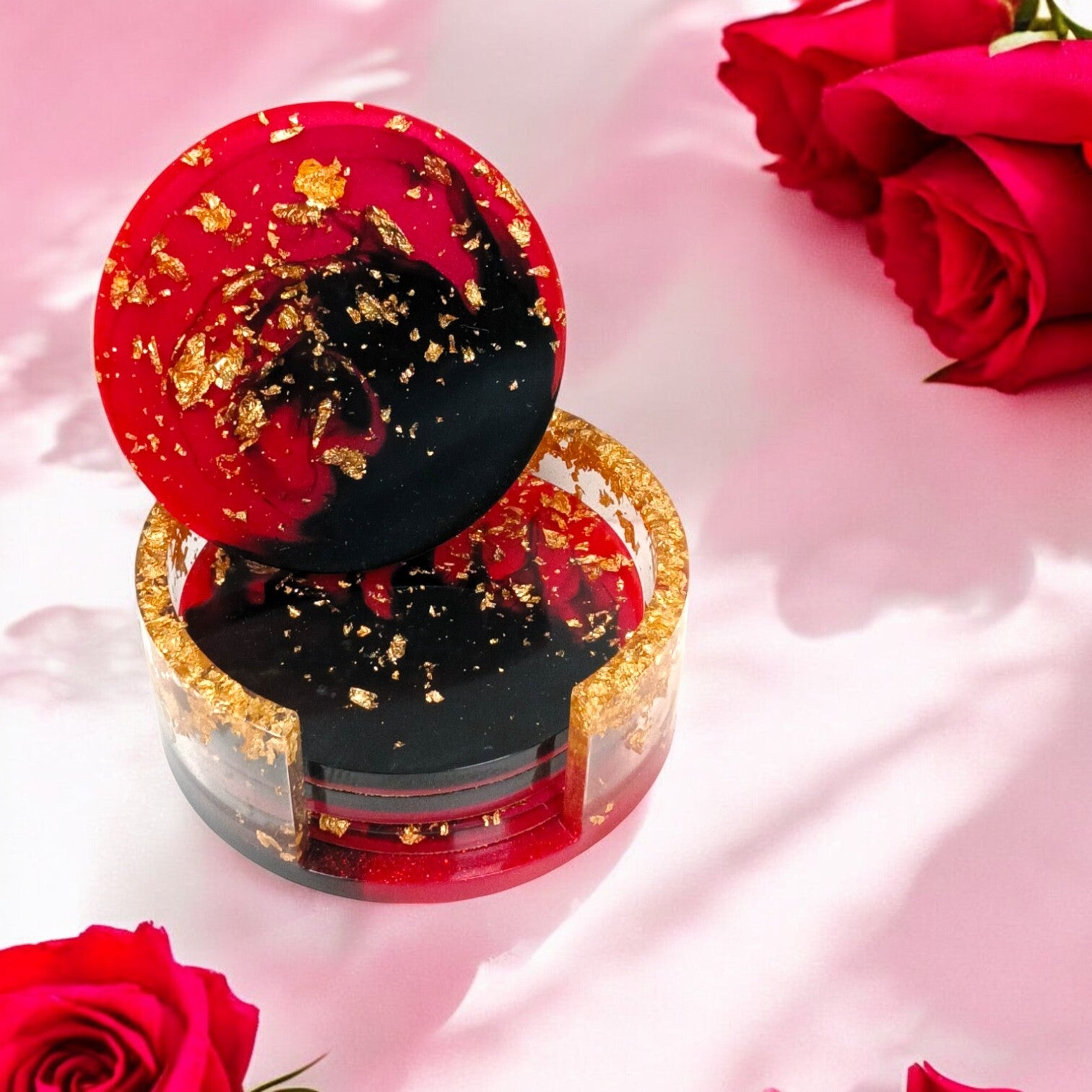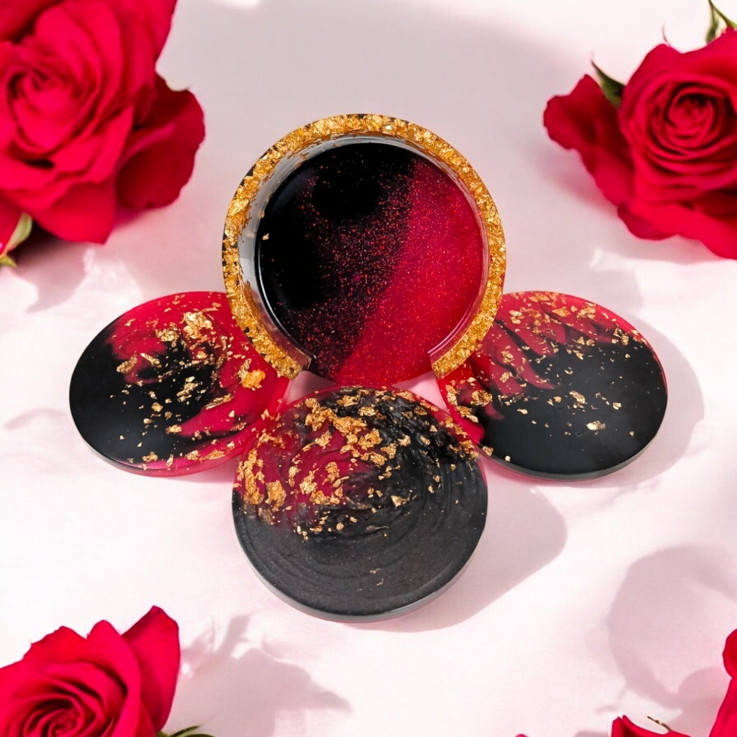 Apportez une touche de glamour et d’audace à votre décoration avec ce lot de sous-verres en résine époxy, entièrement réalisés à la main.