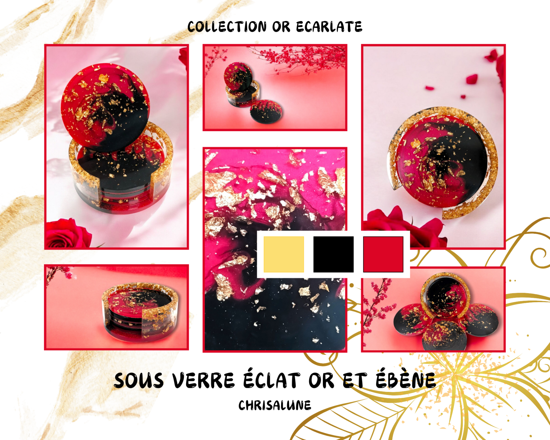 Plongez dans l'univers envoûtant de la collection Or Écarlate, où le rouge passion embrasse le noir profond et les éclats d’or pour créer une œuvre d’art délicate et luxueuse.
