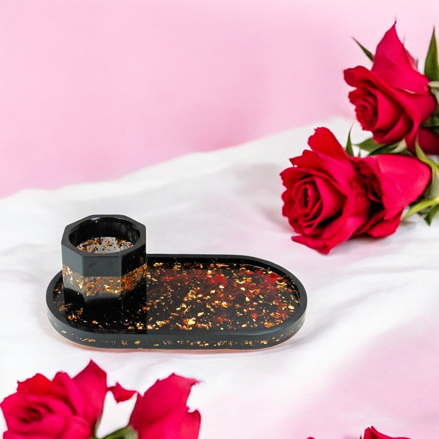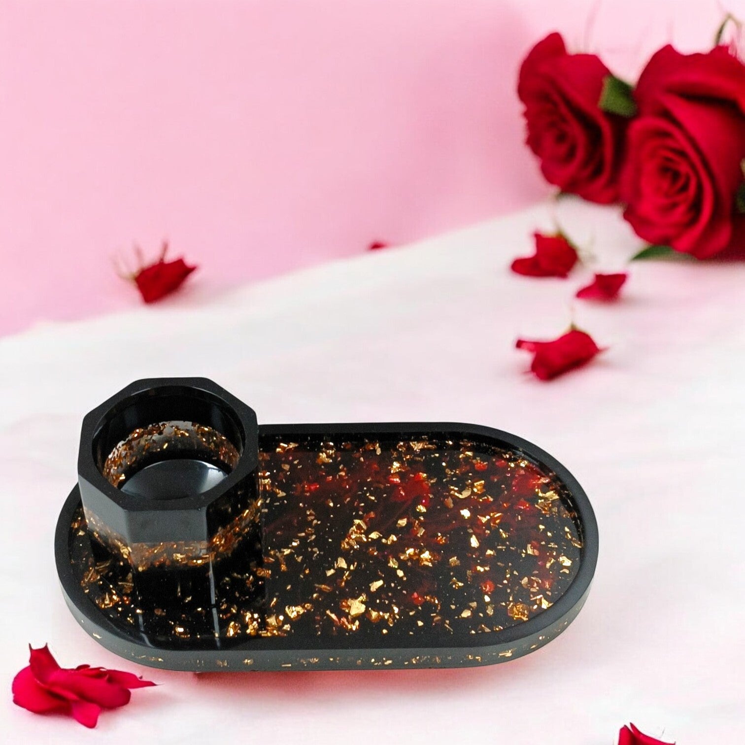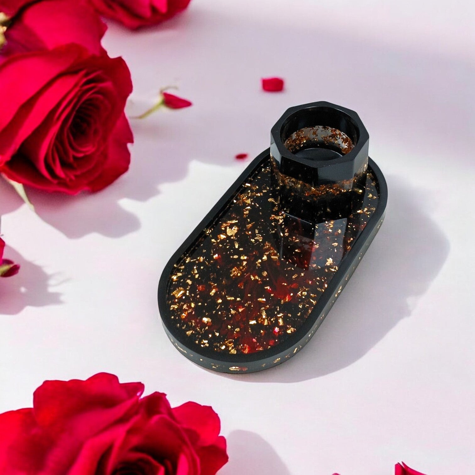 Un écrin pour vos bijoux, clés ou trésors du quotidien, sublimé par une composition luxueuse mêlant noir profond, éclats d’or et éclats rouge rubis. Chaque pièce est soigneusement coulée à la main, ce qui rend chaque exemplaire absolument unique.