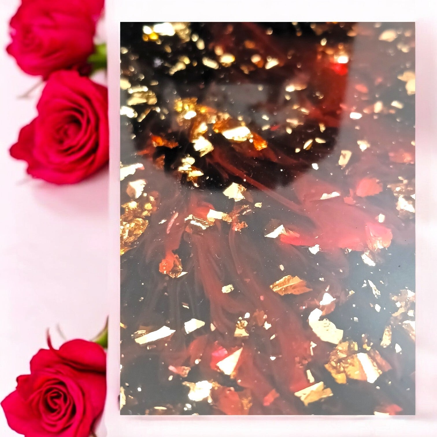 Plongez dans l'univers envoûtant de la collection Or Écarlate, où le rouge passion embrasse le noir profond et les éclats d’or pour créer une œuvre d’art délicate et luxueuse.