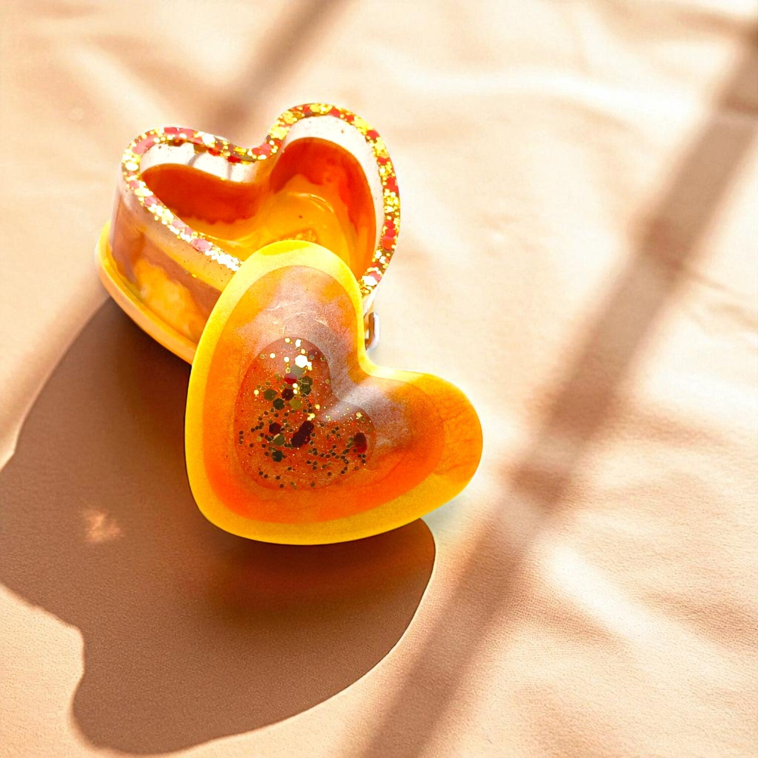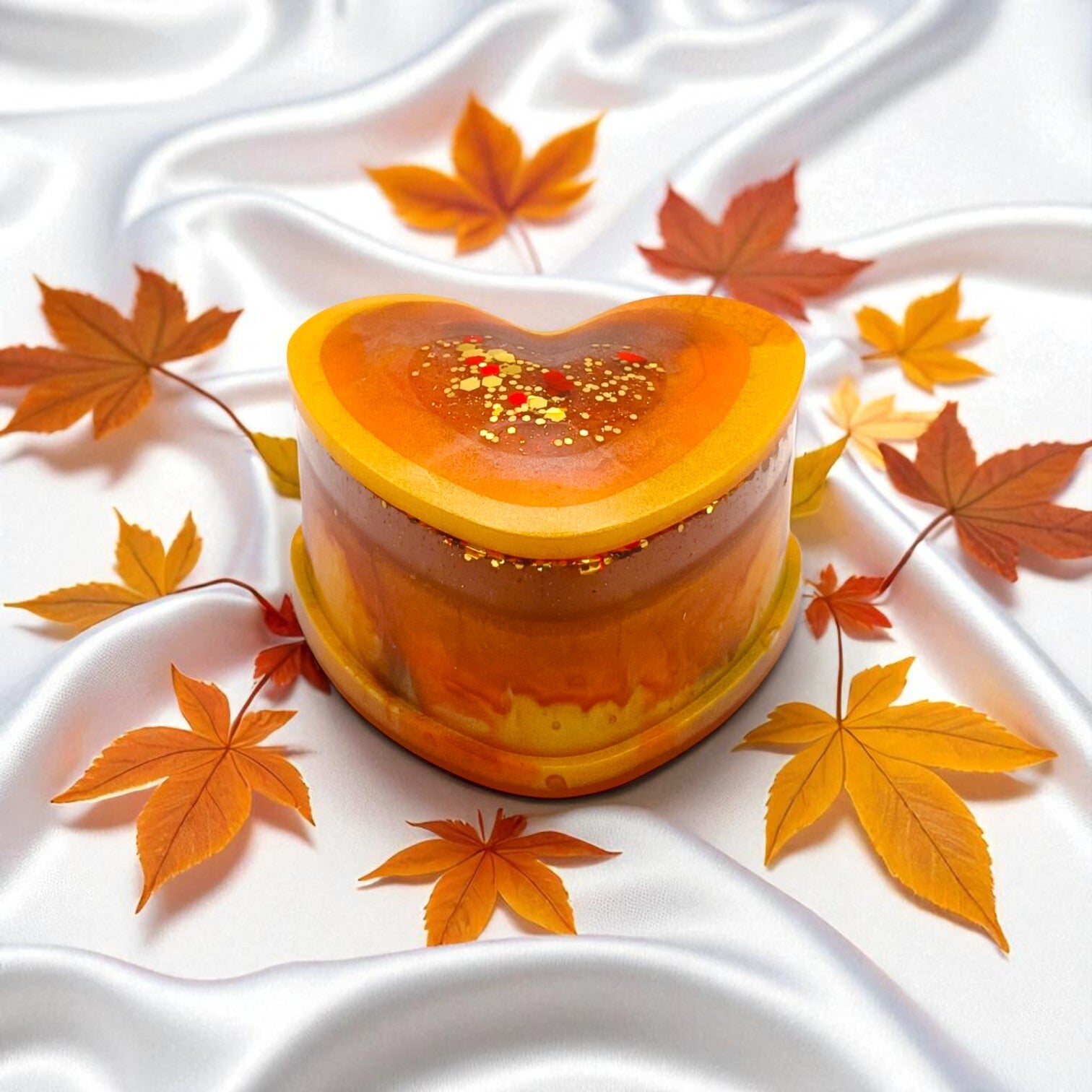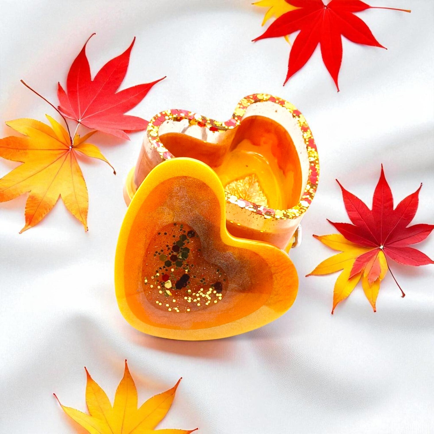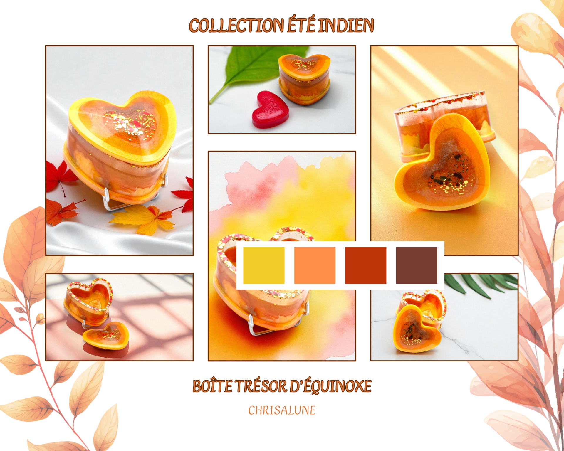 La Boîte Trésor d’Équinoxe est une création poétique en forme de cœur, où les nuances automnales se mêlent entre lumière dorée et douce obscurité. Chaque éclat raconte le passage de l’été vers l’automne et donne à cette boîte toute sa chaleur et son originalité.