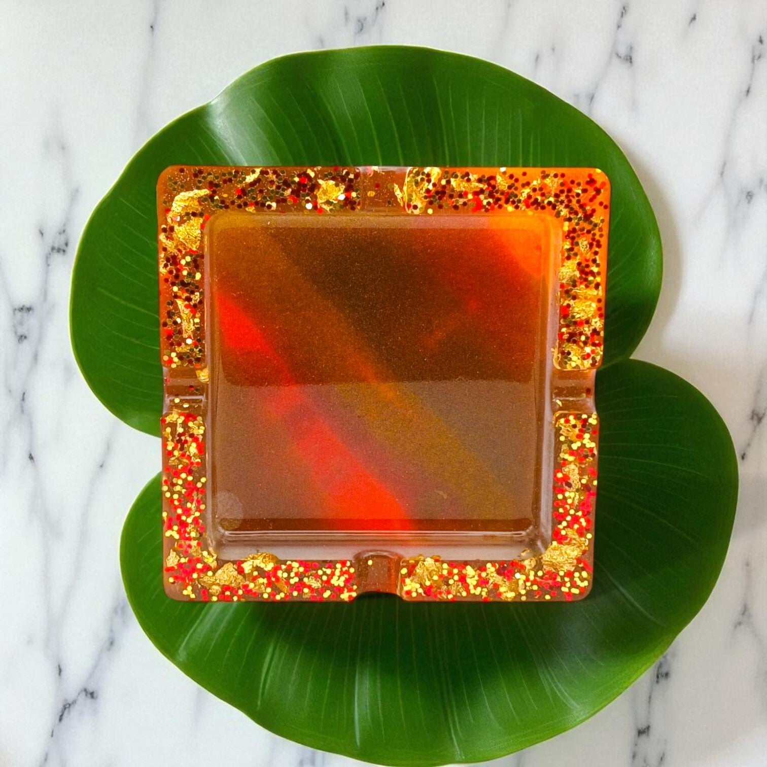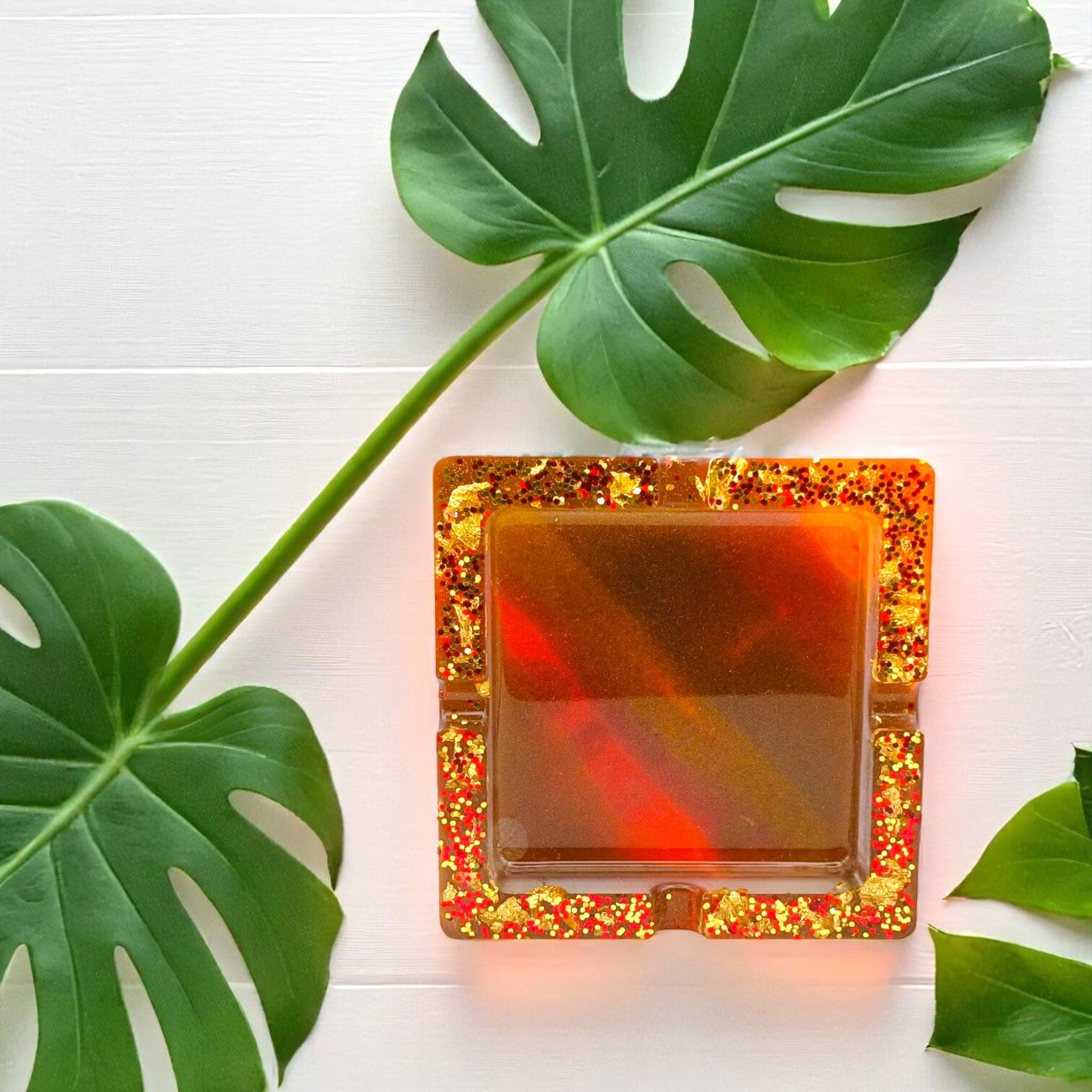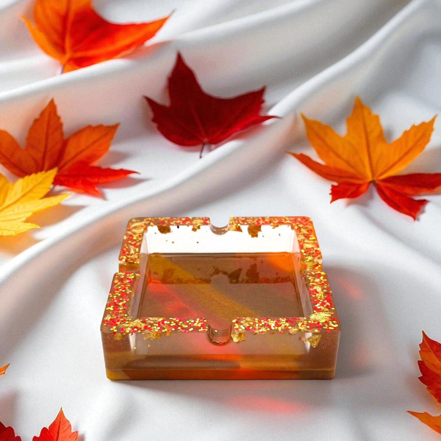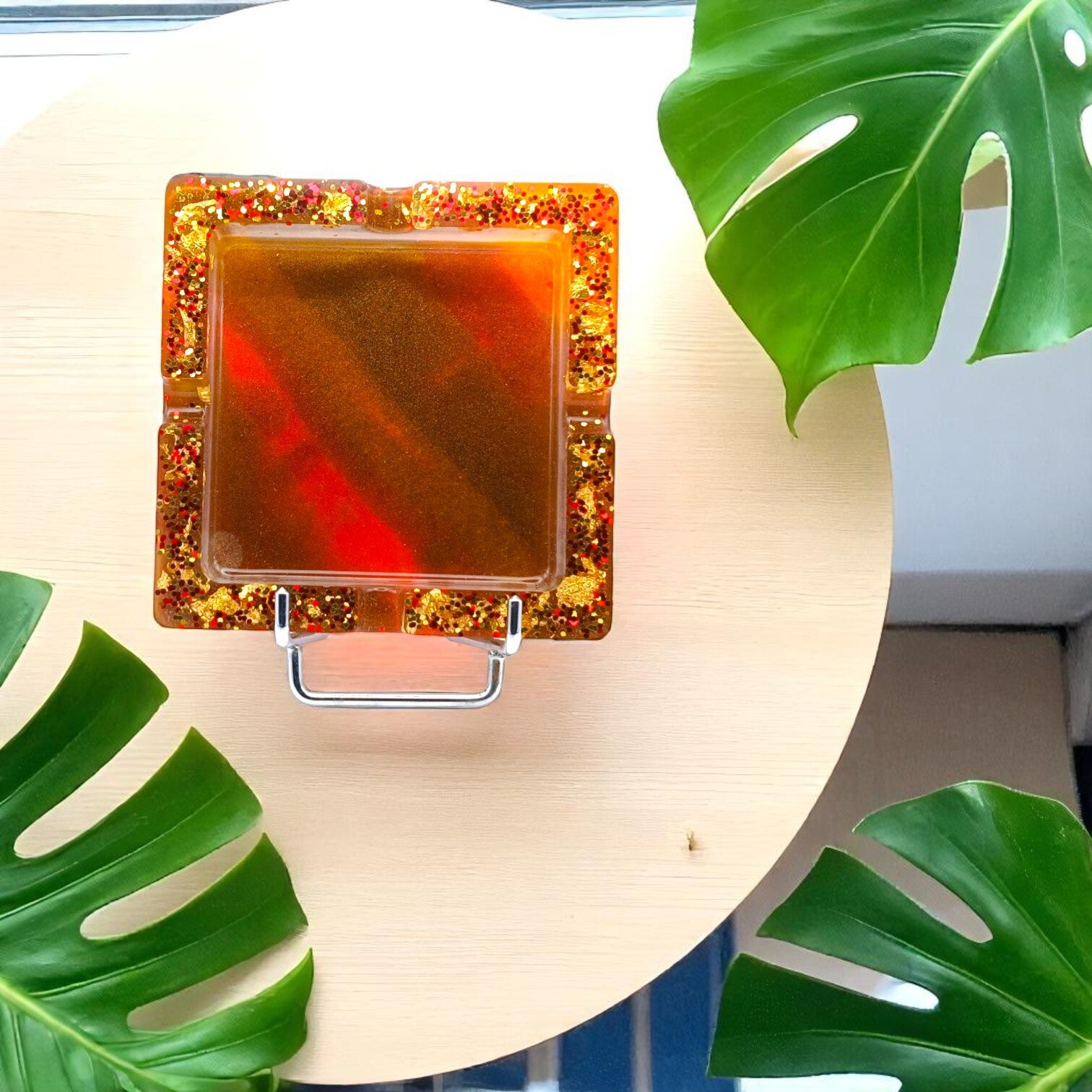 Entièrement façonné à la main dans mon atelier, chaque cendrier en résine époxy est unique : impossible d’en avoir deux identiques. Tu peux l’utiliser comme cendrier, vide-poche ou élément décoratif sur une table ou un bureau. Il attire le regard et diffuse une atmosphère chaleureuse, comme un rayon de soleil d’automne capturé. ✨