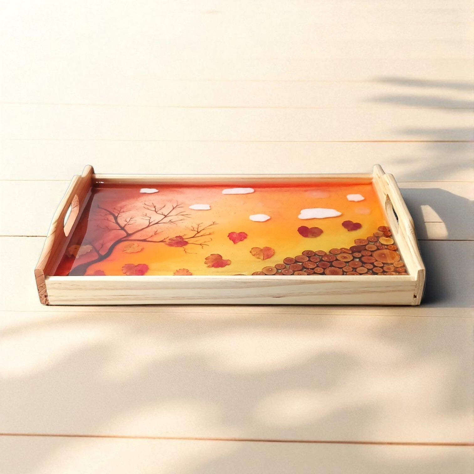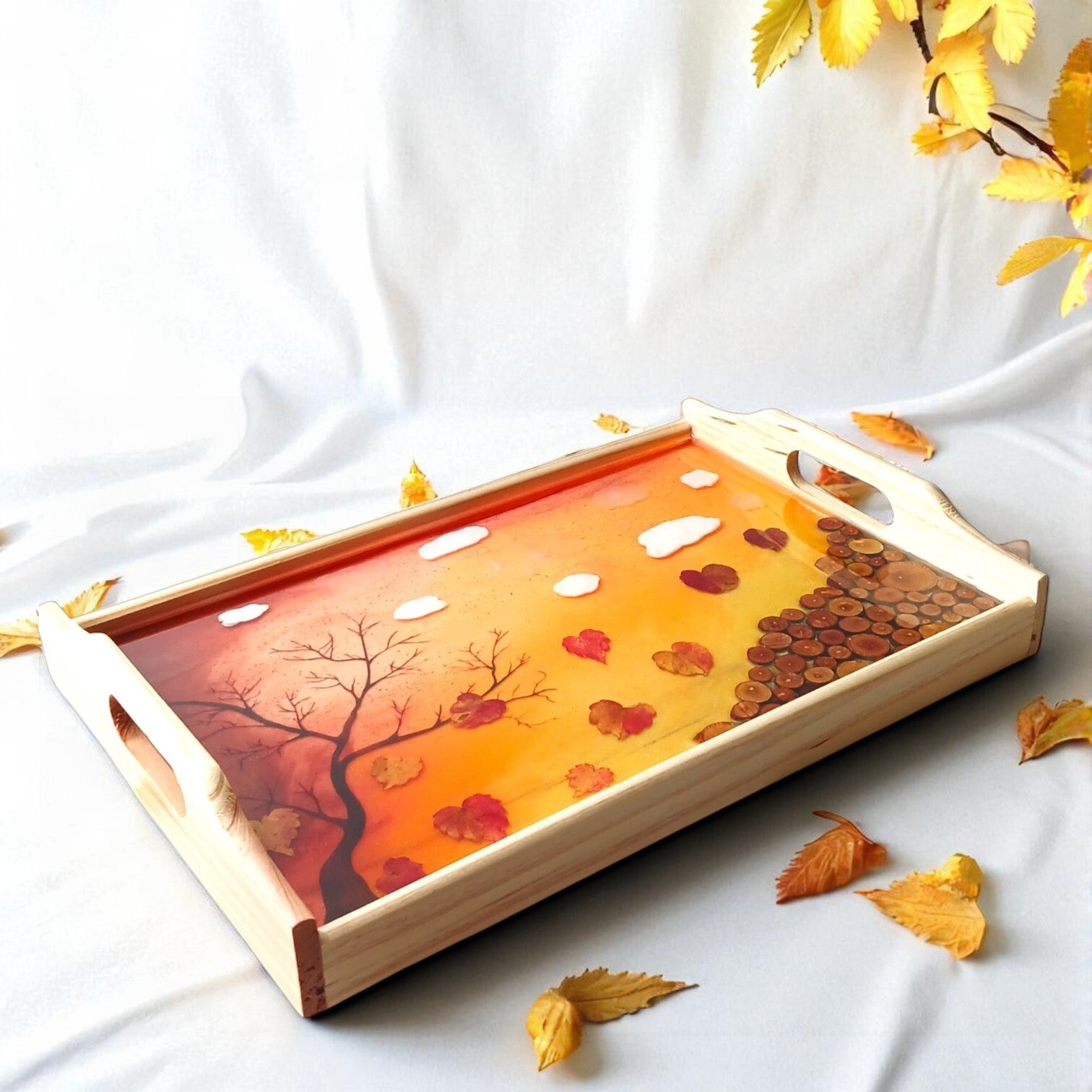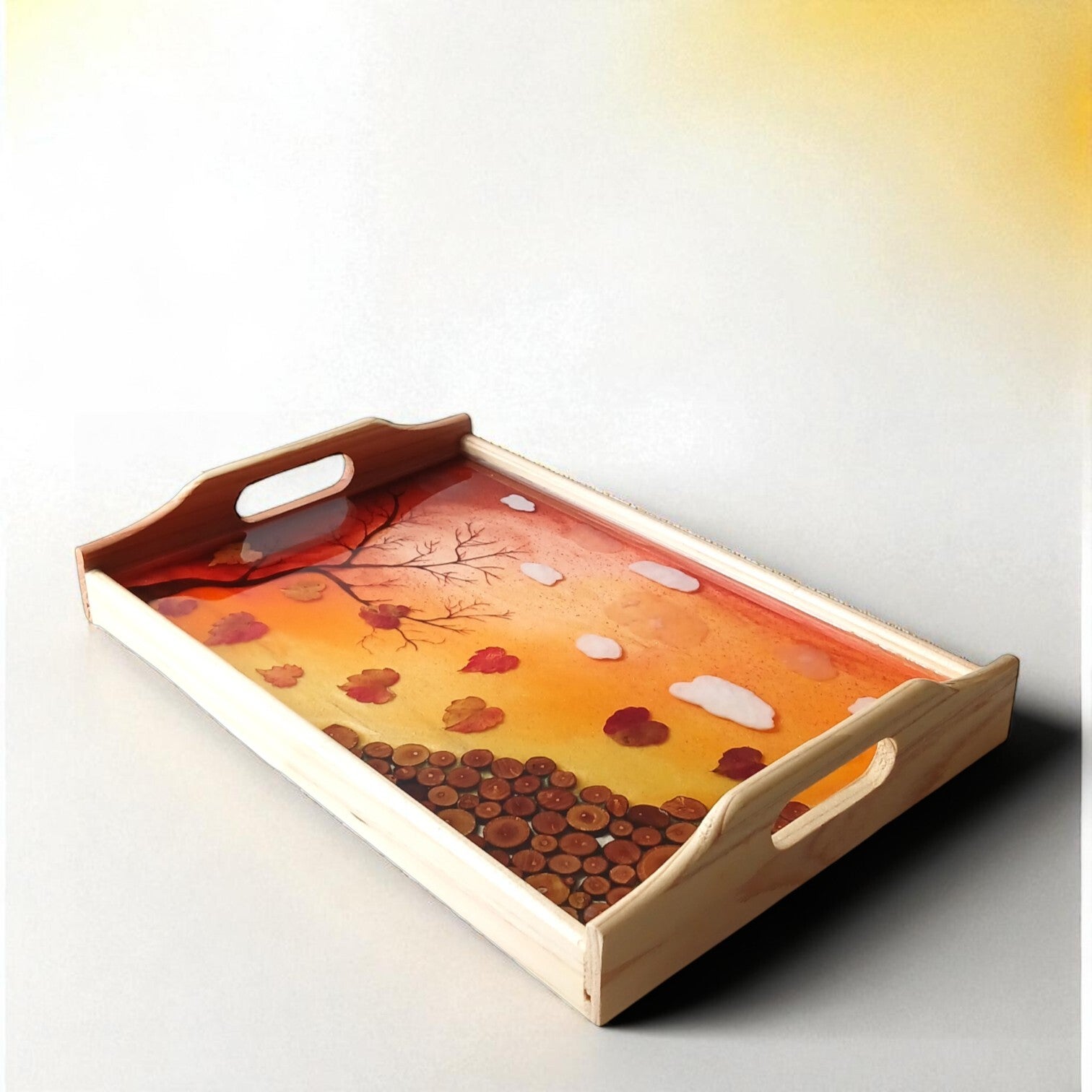 Le Plateau Horizon d’Automne capture la beauté flamboyante des paysages de saison : reflets dorés, nuances ambrées et éclats lumineux qui rappellent les derniers rayons du soleil couchant. Une pièce élégante et chaleureuse, parfaite pour partager un moment ou sublimer ton intérieur.